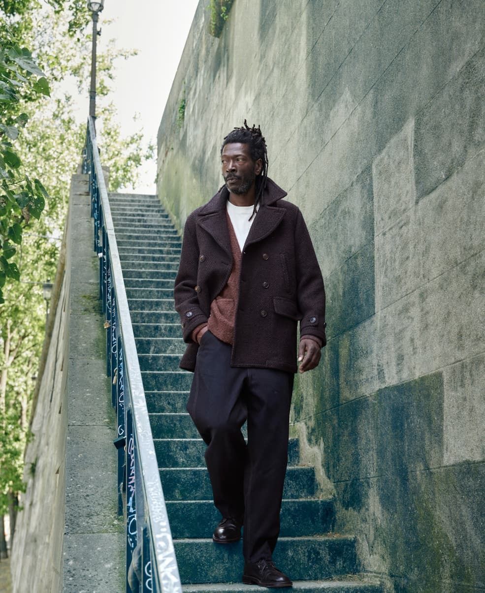 The collection includes soft-shouldered blazers in herringbone wool, relaxed pleated trousers, brushed cotton shirts, and textured knitwear with a lived-in finish. The colour palette stays understated in navy, camel, and olive with the occasional flash of red to keep things lively. Accessories and footwear are pared back with suede sneakers, simple scarves, and slim leather belts that complete the look without drawing attention.